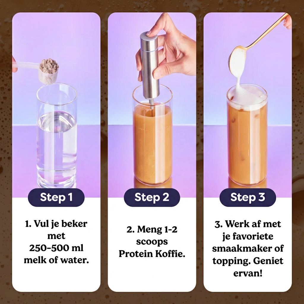 Onze Proteïne Koffie is een snel te bereiden koffie met extra proteïne! De perfecte mix om je te helpen gezonder te worden, af te vallen en je fitnessdoelen te bereiken. We gebruiken de allerbeste instantkoffie die er bestaat en combineren die met ultrazuiver wei-eiwit via ons unieke mengproces. Het resultaat? Pure magie. ✨